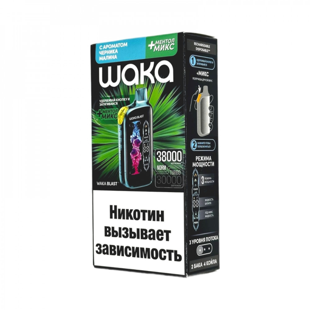 WAKA BLAST 38000 Hard - Черника малина + ментол микс - купить в Арске