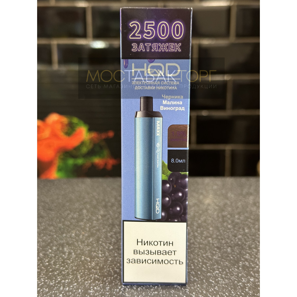HQD видыMAXX (Макс) HQD вкусыЧерника Малина Виноград HQD количество в блокешт